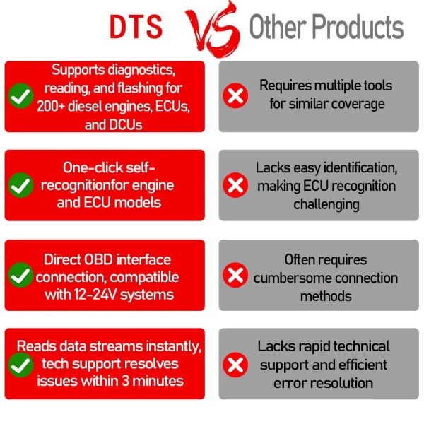 La edición DTS Mate Pro Sagacious es una poderosa herramienta de diagnóstico y programación de todo en uno para vehículos diesel, que ofrece soporte avanzado para más de 200 ECU, DCU y modelos de motores de combustible. Diseñado para sistemas de 12–24V, es compatible con los principales camiones diesel, incluidos los modelos FAW Jiefang J5 y J6. Con características como el auto reconocimiento de la ECU instantánea, la lectura del código de error en tiempo real y la transmisión de datos con un solo clic, esta herramienta ayuda a resolver problemas en cuestión de minutos, sin necesidad de eliminar la ECU. Conéctese directamente a través de OBD, identifique los tipos de ECU incluso si las placas de identificación son ilegibles y obtenga el soporte en tiempo real de un equipo técnico dedicado. El dispositivo DTS simplifica el mantenimiento de la flota, el diagnóstico del motor de combustible y la programación de la ECU en un flujo de trabajo perfecto y eficiente. Ideal para talleres de vehículos comerciales, equipos de reparación móvil y operadores de flotas en Guatemala City, Mixco, Villa Nueva, Petapa, San Juan Sacatepéquez, este escáner avanzado está construido para maximizar el tiempo de actividad y minimizar la complejidad de reparación.